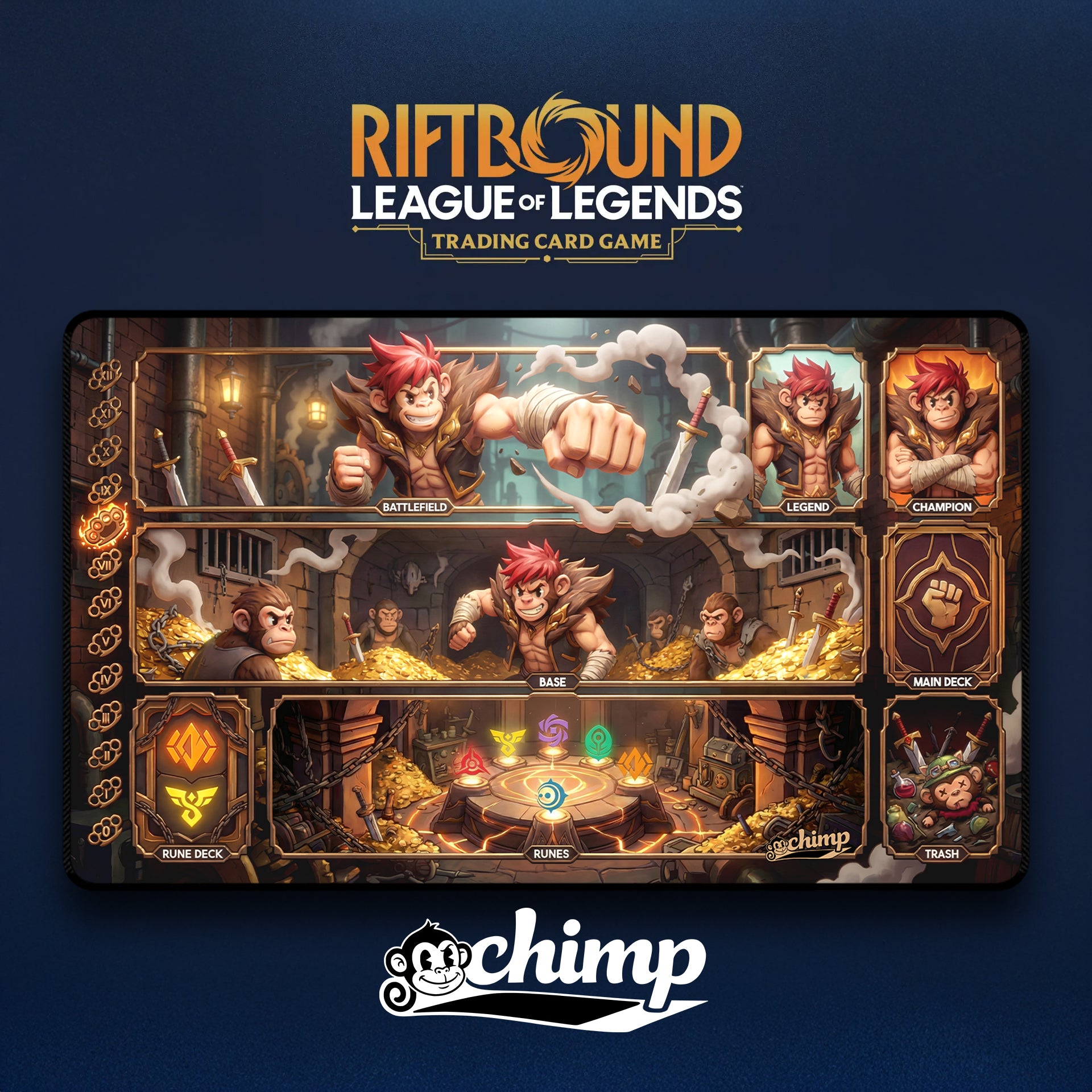 Unleash raw power with the Sett Chimped Riftbound TCG playmat—a gritty tribute to the streets and the fighters who own them. This striking mat channels the criminal underground with intense, battle-hardened imagery that demands attention. Built for serious players who play with conviction and style. Elevate your game with a playmat that matches your fearless approach to competition.